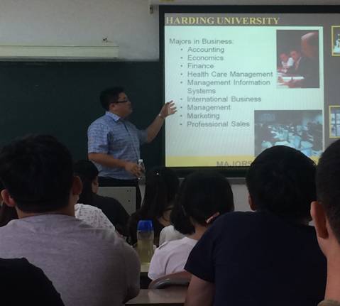 10月9日,哈町大学中国与东亚招生项目主任、中美研究院副院长West Ling来访,为我院2014、2015级哈町项目学生介绍哈町大学情况。