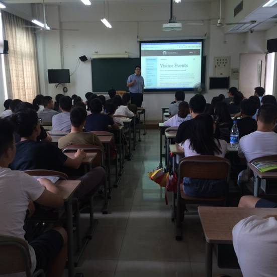 讲座中,West Ling首先通过播放视频,让同学们更为直接地了解哈町大学的情况。接着,他为同学们详细介绍了美国哈町大学的专业、住宿等具体情况以及入学的具体要求,并说明了留学申请的提交时间。期间,West Ling与同学们现场互动,鼓励同学们积极发言。