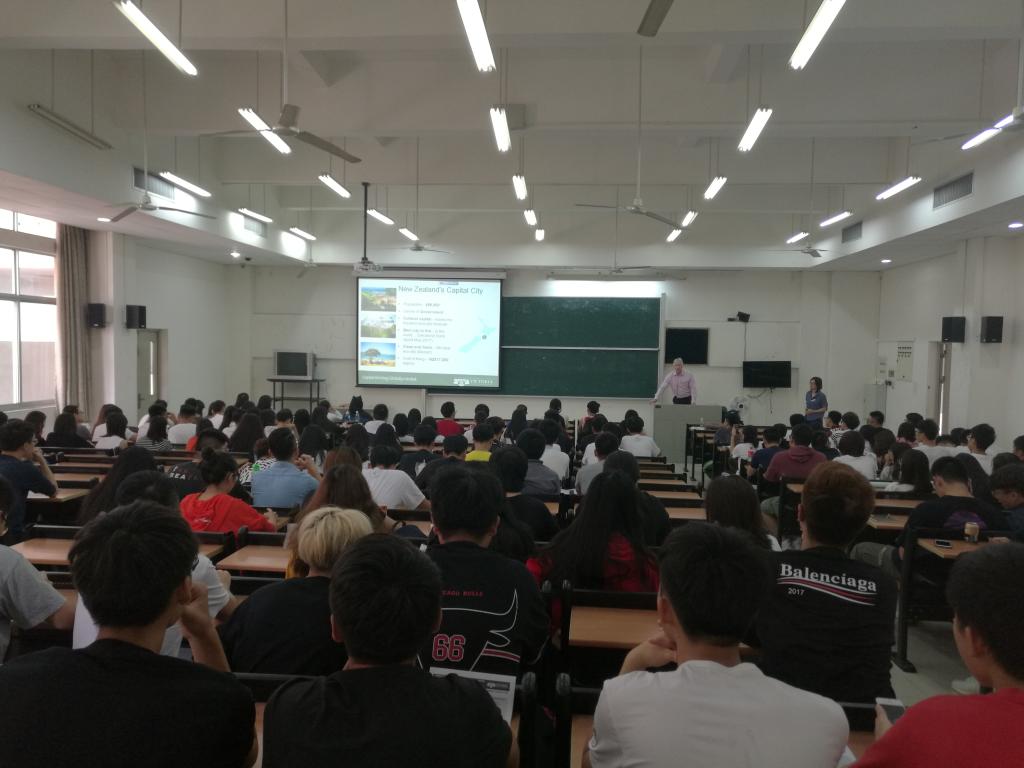 本网讯:10月20日,新西兰惠灵顿维多利亚大学国际部招生项目负责人Roger Armstrong在我院南校区举办讲座。讲座上,RogerArmstrong详细介绍了新西兰惠灵顿维多利亚大学的校园环境、专业设置和住宿条件等情况,并就学生关于新西兰留学的问题进行了解答。
