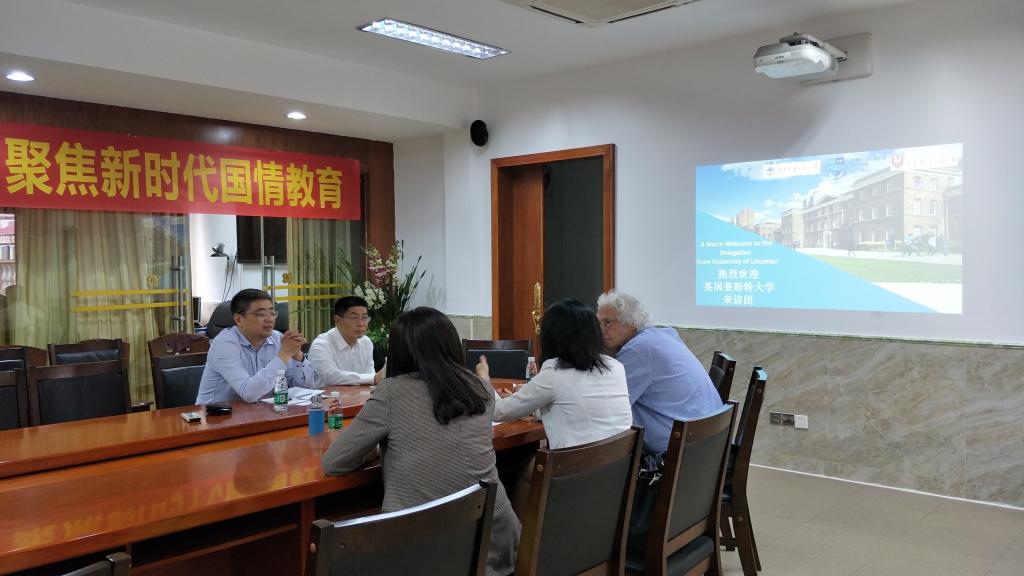 本网讯 4月24日下午,英国莱斯特大学国际处助理副处长Tracy一行来访国际学院。国际学院院长魏辉良、副院长刘明在103会议室会见了来宾。