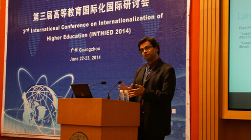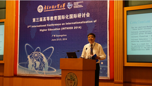 本网讯 由广东外语外贸大学主办,广东外语外贸大学国际学院承办的第三届高等教育国际化研讨会于2014年6月22日在广东外语外贸大学国际会议厅举行,世界多所知名大学专家学者齐聚广外,探讨深化高等教育国际合作问题,总结国际教育合作经验。中国留学人员服务中心副主任程家财、广东省教育厅副巡视员胡振敏和我校校长仲伟合出席了本次研讨会,会议由我校副校长方凡泉主持。