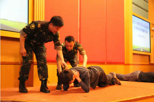 本次观摩会本着“平安、快乐、理性、成功留学”理念,设置海外人身安全机制与海外情商两大主题,并采用同期录像的形式进行。教育部留学服务中心安保培训合作机构德威国际教育集团教官对“海外留学安全注意事项”等安保知识进行了示范,比如:遇到枪击或爆炸时如何躲避并逃离现场;女生如何正确背包以防扒手;被人劫持时如何根据劫持动作成功逃脱以及火灾发生时的自我防护。并总结,安全有三宝:警惕、距离和掩体,即尽量避免问题发生、危险发生时要保持安全距离以及寻找掩体以保护自己。