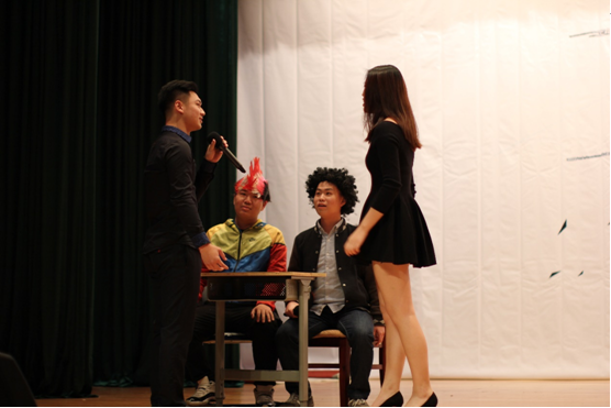 紧接着是歌队带来的HIPHOP串烧,在劲歌热舞下,现场气氛也一下子沸腾起来;随后音乐一变,青春的声音娓娓道来——伴着二人的浅吟低唱,一首《小幸运》,仿佛将观众带回到日夜思念的昔日同窗身边;倏地,婉转清新的声线戛然而止,片刻之后,节奏感十足的R&B歌曲与《Nothing On You》,唤醒了全场的热情;而歌咏队成员兼戏剧社社长廖天雄更是带领着戏剧社在Rap中无缝衔接地展示出他们精心准备的小品《青春修炼手册》,接连不断的搞笑段子、逼真又有趣的演技令人捧腹大笑。他们用特别的方式表达了对国际学院的感谢,精彩绝伦的表演让观众们赞叹不已。