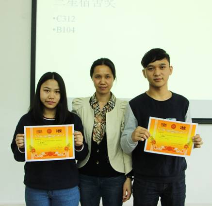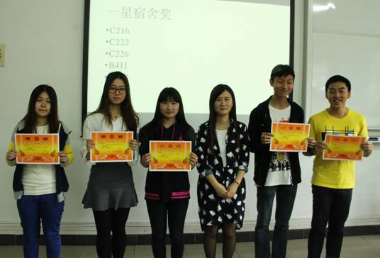 3月27日下午,本次大赛的总结大会暨颁奖典礼在136教室举行,除了生活部全体成员和获奖宿舍代表之外,出席本次大会的还有学院党总支副书记骆银花、团委书记王斌龙、辅导员丁旋旋、张雪等领导和老师。