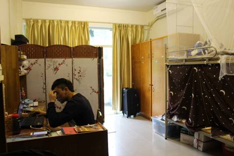 当然,男生宿舍也有令人啧啧称赞的宿舍——C312:一尘不染的地板、干净的床铺、摆放整齐的用品,而那扇古色古香的屏风更是让人眼前一亮。