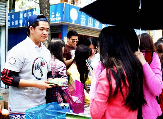 【本网讯】2015年4月13日——4月30日11:30至13:30,我院兰开夏项目国际商务及国际商务文化的大二学生在相思河边进行了为期三周的课程实践活动。作为该项目两年国内课程计划的重要部分,一年一度的课程实践经过了市场调研、市场分析、项目报告等多个环节,具体操作为学生四人一组建立一个模拟公司,独立构思、拟定主题、设计、进货以及定价等,目的是希望学生们在此次活动中积累实践经验,为日后的创业或就业打下基础。