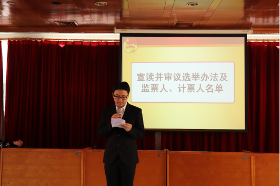 郑泽沣宣读《国际学院第九届团委、学生会委员选举办法及监票人、计票人名单》