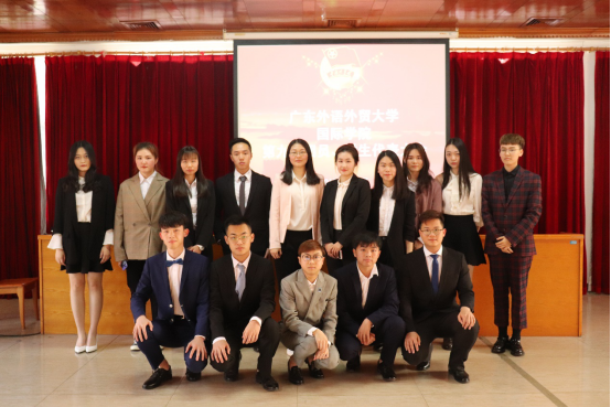 2018 年 4 月 8 日下午,广东外语外贸大学国际学院第九次团员、学生代表大会在国际学院二楼活动室顺利召开。出席本次大会的领导嘉宾有校团委苏奕书记,国际学院党总支钟罗军书记,国际学院党总支骆银花副书记,国际学院团委书记刘甜甜老师,辅导员张雪老师以及 96 名团员、学生代表。