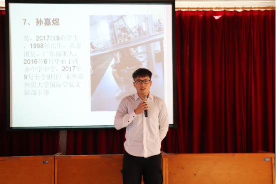 接下来是国际学院第九届团委委员和学生会委员竞选演讲环节。本次共有20名候选人参选,其中团委委员候选人9名,学生会委员候选人11名。各位候选人身着正装,意气风发,从容不迫地有序上台演讲,演讲严谨而自成一派,展现了国院学子的阳光正气。