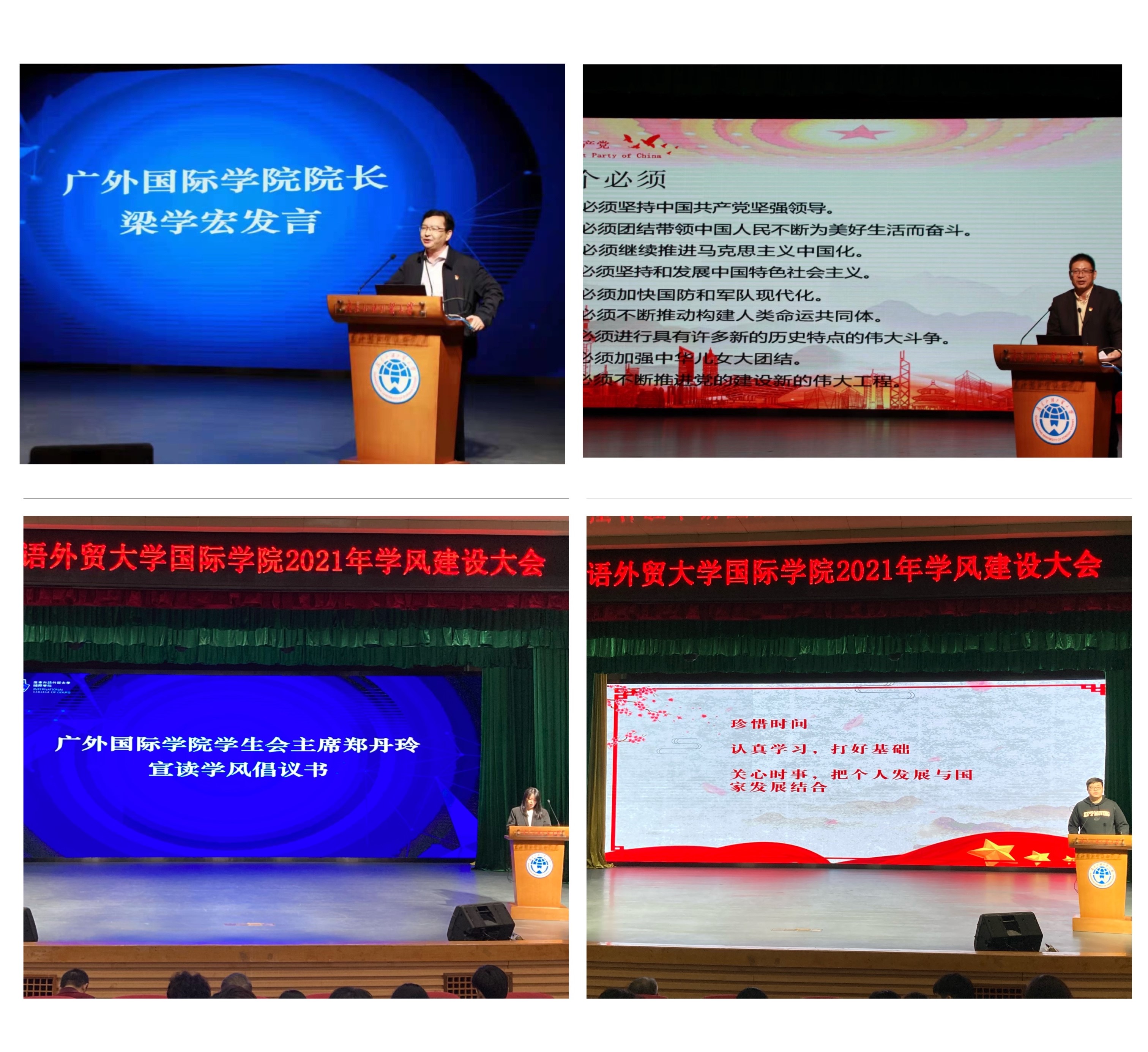 11月18日下午,国际学院举行2021年度学风建设大会,学院办学督导陈林汉、学院全体院领导及各项目辅导员老师出席会议。国际学院北校区全体同学在六教报告厅现场参会,南校区全体同学在线上同步参会,同时邀请了全体学生家长在线上同步参会。会议由学院党总支副书记主持。