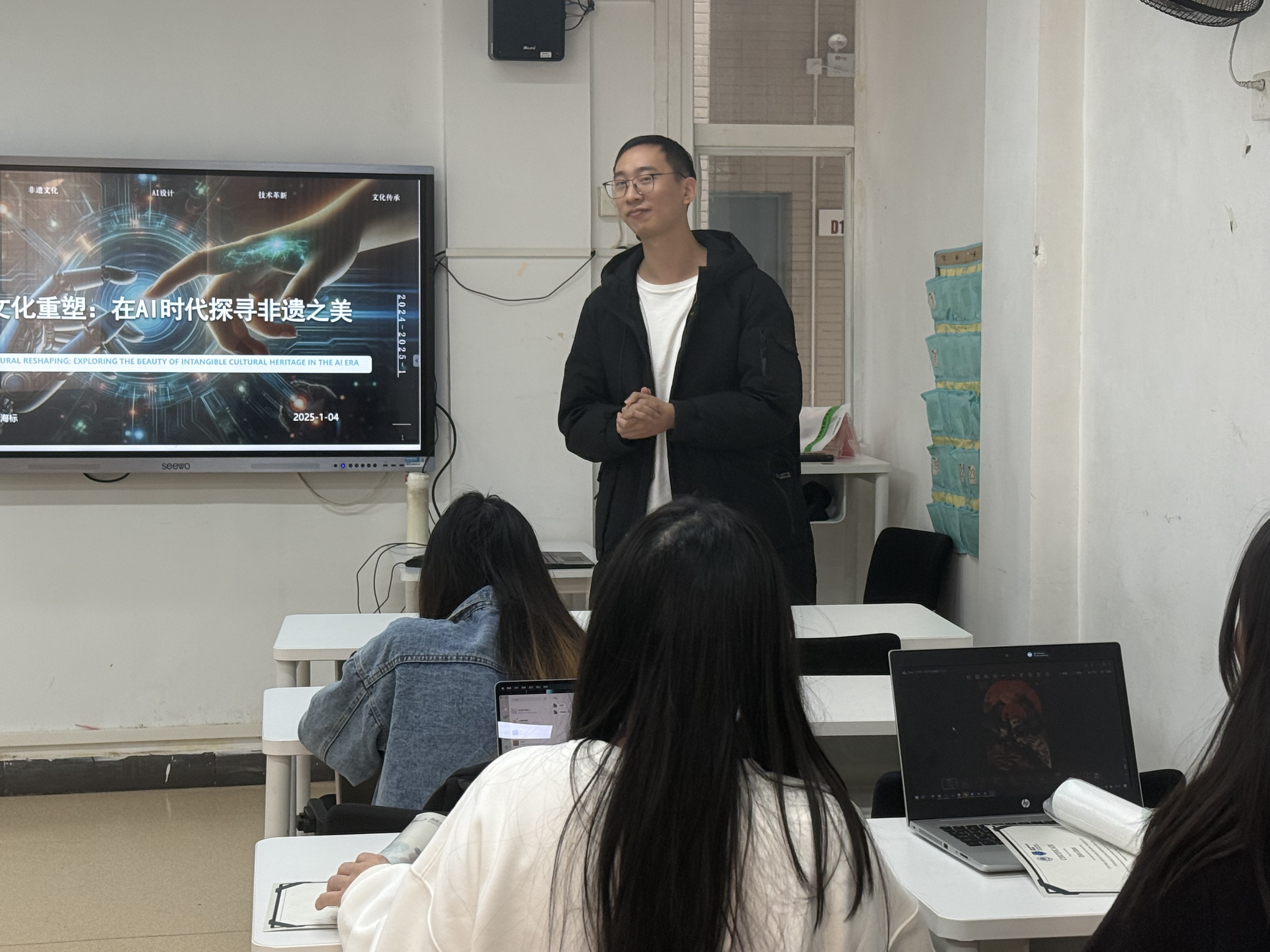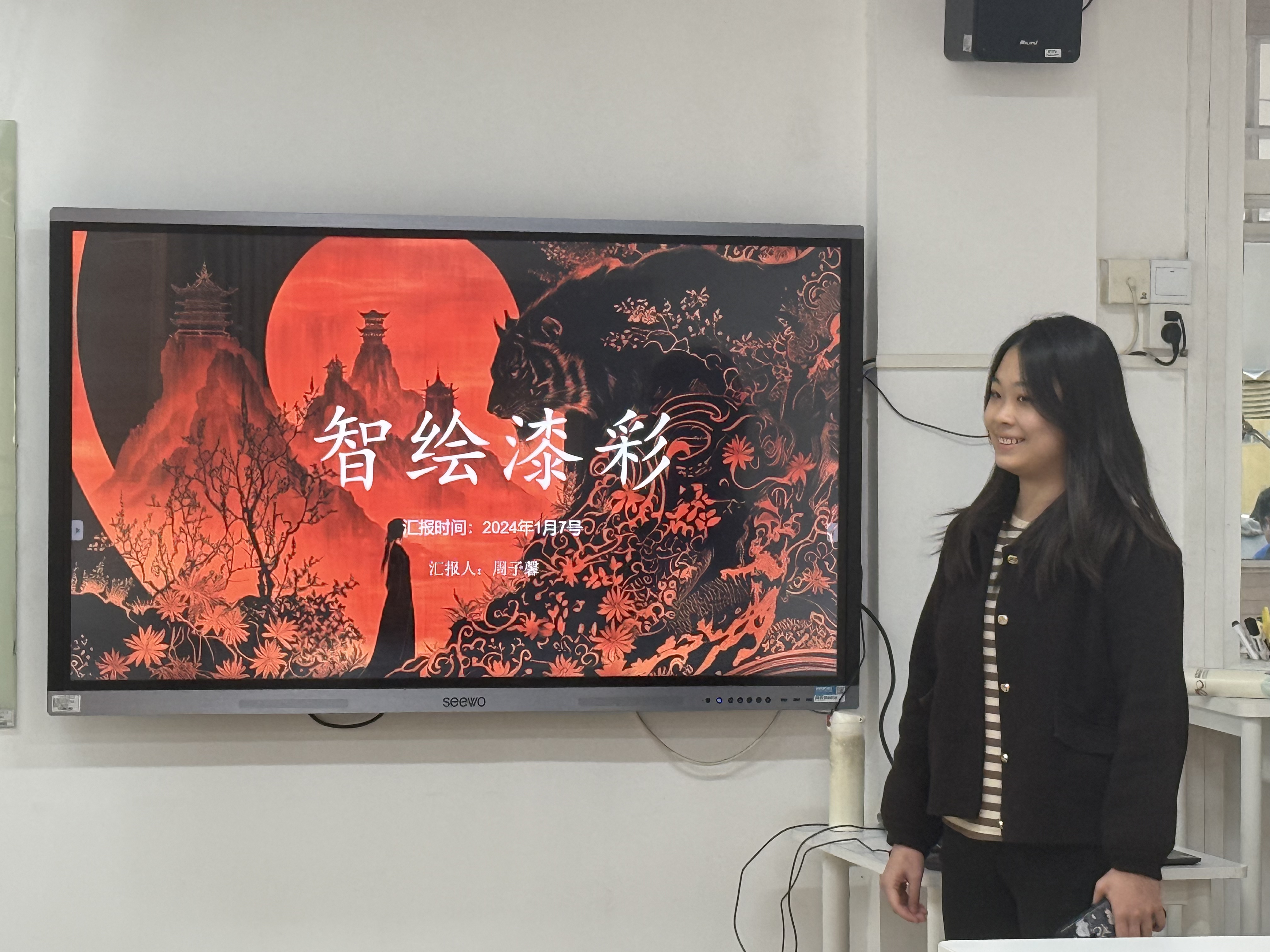 1月4日,为期四天的《文化重塑:在AI时代探寻非遗之美》专业实践工作坊开始了。在钟海标老师的指导下,同学们先认真学习了AIGC软件的基础理论,尝试用文生图的方式,逐渐掌握AI生图的技巧,然后前往白鹅潭大湾区艺术艺术中心调研,从非物质文化遗产的展览中获取创作灵感,并通过问卷调查了解观展市民对非遗文化的喜好,最后回到课室用AI工具创作高质量的图像、视频。