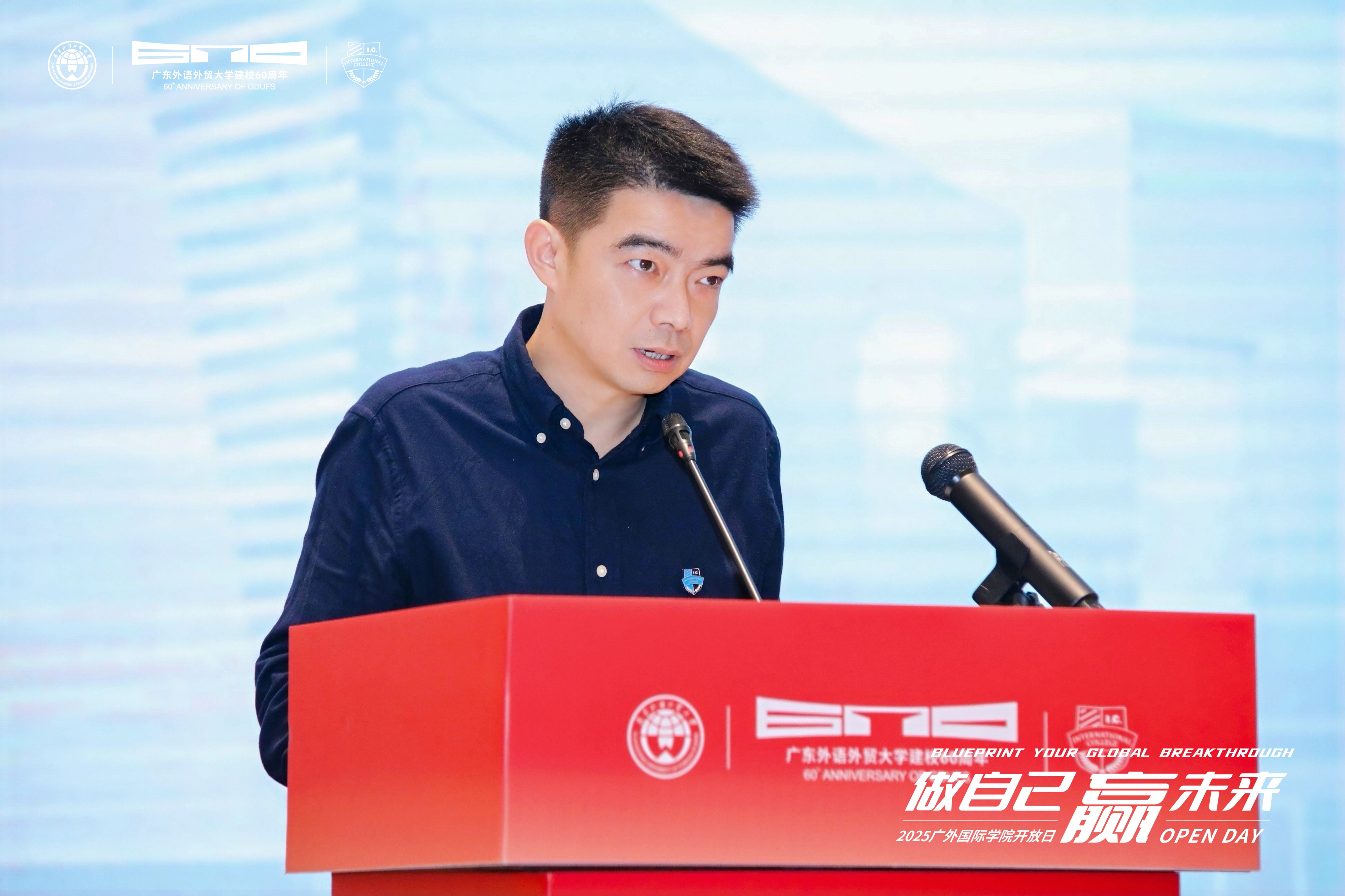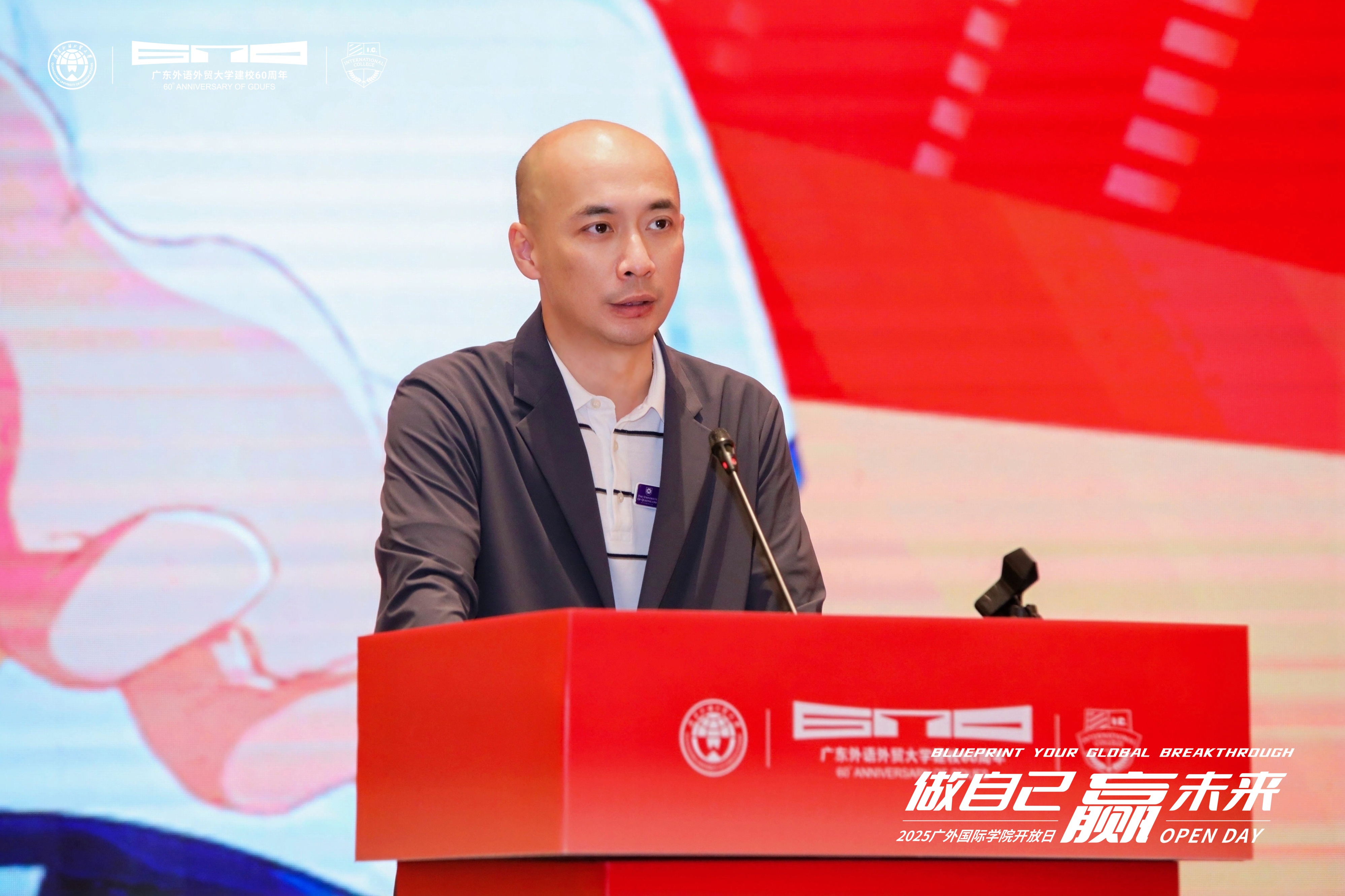 广东外语外贸大学副校长谢伟光在致辞中高度肯定了国际学院的办学成就。他指出,自2004年成立以来,国际学院依托广外国家级一流本科专业的雄厚师资,累计培养了13515名学子赴国外求学,近90%获得QS世界排名前200的大学硕士学位,为国际化人才培养树立行业标杆。广外始终坚持国际化核心战略,大力实施“PRIME计划”。学院今年新增英国伯明翰大学(QS全球76位)、意大利米兰新美术学院等国外院校,持续推动教育国际化迈向卓越。