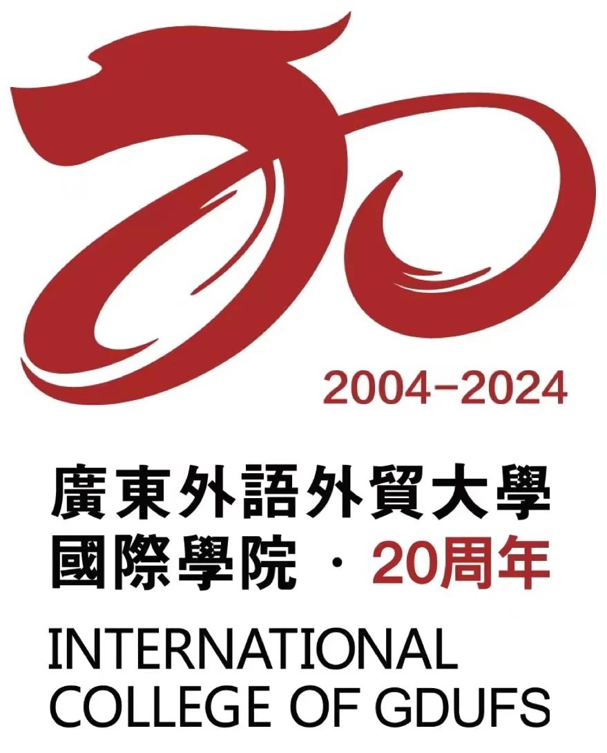 广东外语外贸大学国际学院20周年院庆徽标如下图所示: