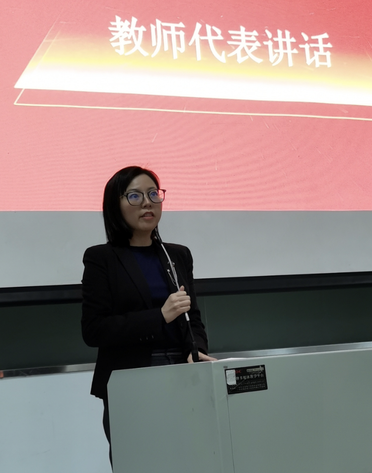 班主任代表欧娟娟、张彤彤分别发言,对班主任工作职责、分班情况进行介绍。欧娟娟表示,学院将对学生学业过程进行记录,建立学生学习档案,帮助同学们克服学习困难,取得更大的进步。张彤彤希望老师们在教书的同时重视育人,关心爱护学生,全面、细致、及时了解学生各方面动态,营造积极向上的学习氛围。